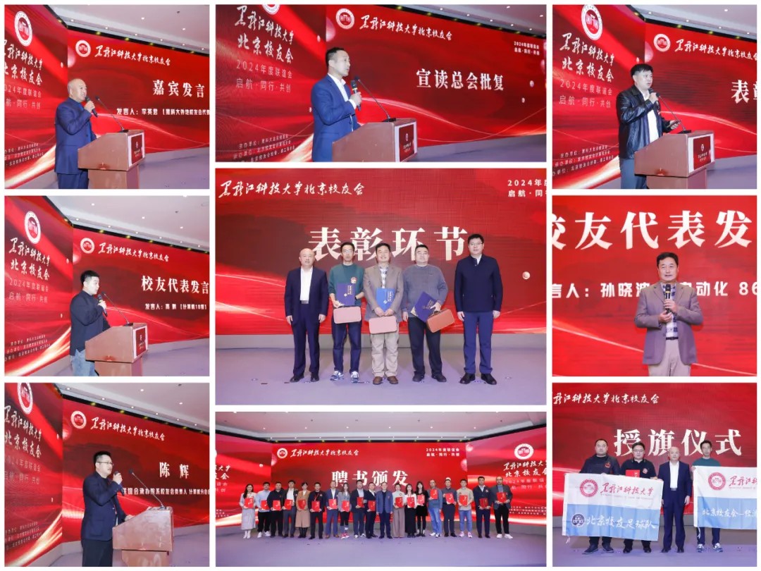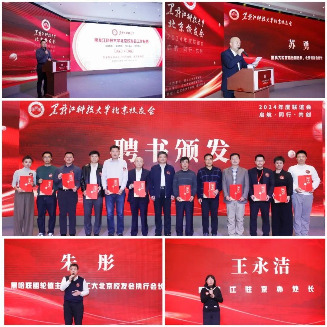 会上,北京校友会秘书长苑文波系统总结了北京校友会成立至今主要开展的工作,详细规划了北京校友会下一步工作思路;校友总会副会长、计算机与信息工程学院校友会会长赵金宪宣读了校友总会关于同意北京校友会换届的批复;北京校友会副会长张贵春宣读了北京校友会先优表彰决定;孟上九为新一届理事会会长、副会长颁发聘书;张保勇为北京校友会优秀校友颁发荣誉证书;校友总会副会长、招生就业处处长高志刚为新一届理事会秘书长、副秘书长颁发聘书;校友总会副会长、北京校友会会长苏勇为北京校友会新成立校友组织授旗;计算机专业18级校友高鹏,自动化86级校友孙晓波,北京校友会副会长、计算机学院分会会长陈辉分别代表在京新校友、资深校友、承办单位发言;我校大连校友会会长李英君,黑哈高校联盟轮值主席、哈工大北京校友会执行会长朱彤,黑龙江驻京办处长王永洁分别代表地方校友会、黑哈高校联盟、黑龙江驻京办致辞;苏勇代表北京校友会致欢迎辞。