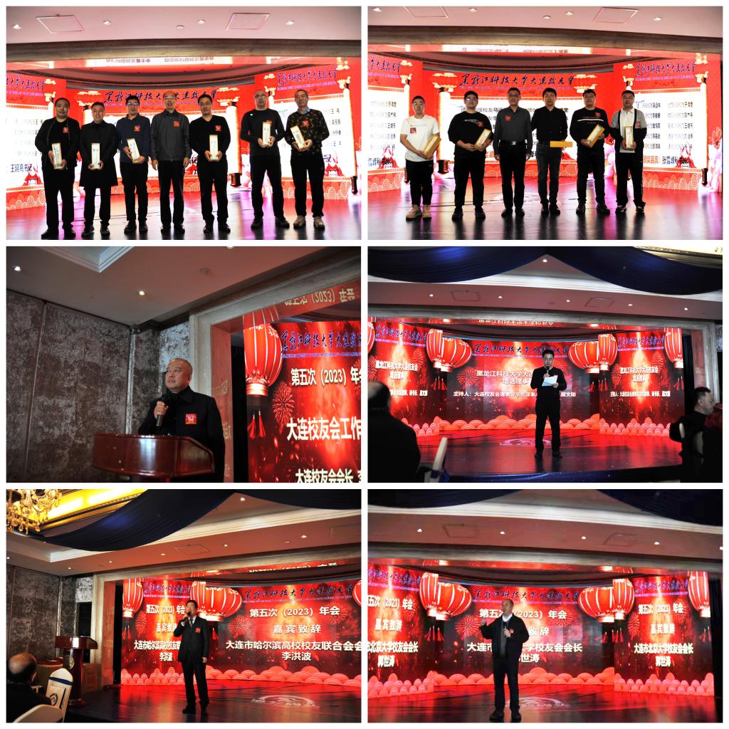 会议在激昂的校歌声中拉开帷幕;会上王延高为优秀校友工作者颁奖;校友总会秘书长、学校办公室副主任张雪峰为优秀校友颁奖;大连校友会会长、建工87级校友李英君作了大连校友会2023年工作报告;大连校友会秘书长、机设98级校友展文刚主持增选理事仪式,成功增选计算机科学与技术专业02级校友徐鹏、土木工程专业06级校友蔡明为大连校友会理事;大连市哈尔滨高校校友联合会会长李洪波、大连市北京大学校友会会长郭世涛分别致辞送上祝福。